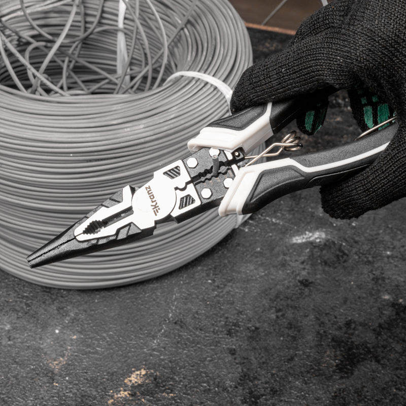 Многофункциональные универсальные тонкогубцы – это инструмент на все случаи жизни включающий в себя: тонкогубцы, бокорезы, инструмент для зачистки кабеля, инструмент для обжима клемм.