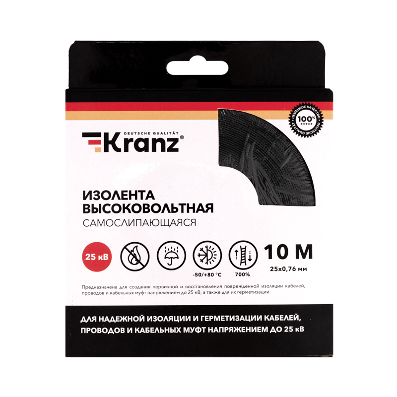 Высоковольтная самослипающаяся изоляционная лента KRANZ предназначена для создания первичной и восстановления поврежденной изоляции кабелей, проводов и кабельных муфт напряжением до 25 кВ, а также для их герметизации.