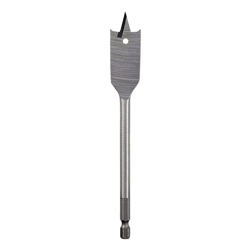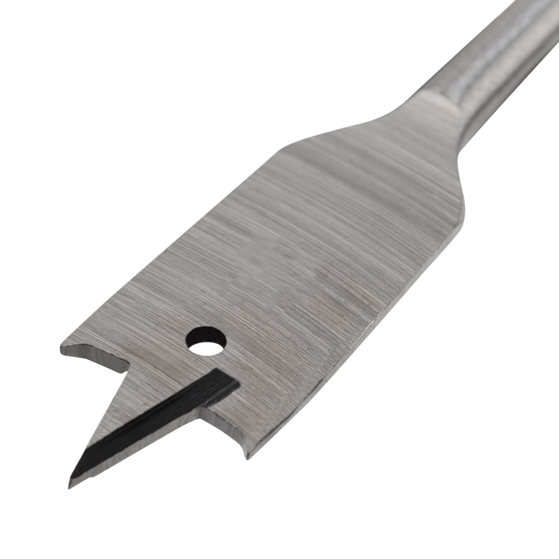 Сверло выполнено из закаленной инструментальной стали, которая повышает износостойкость и долговечность инструмента. Состоит из рабочей части и шестигранного хвостовика. В центре рабочей части находится выступ, благодаря которому можно зафиксировать инструмент во время засверливания. С двух сторон от центрального выступа размещены режущие лезвия. Благодаря подрезателям на режущих кромках рабочей части в отверстиях получаются ровные края. Хвостовая часть, выполненная в виде шестигранника, надежно фиксирует сверло в патроне инструмента.
