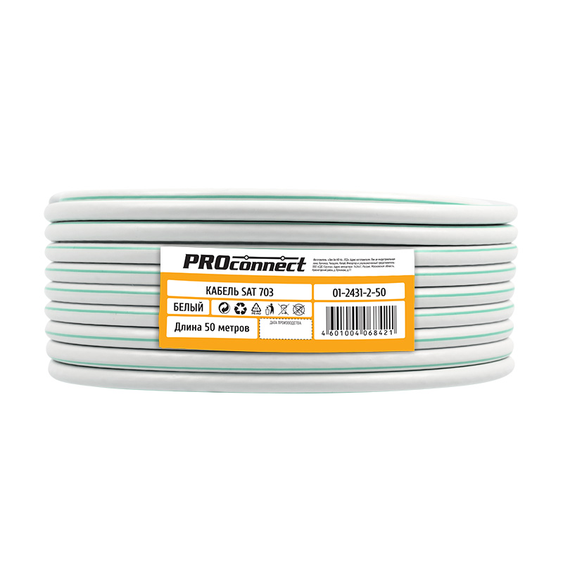 Кабель коаксиальный SAT 703B, 75Ом, CCS/Al/Al, 75%, 50м, INDOOR, белый PROconnect