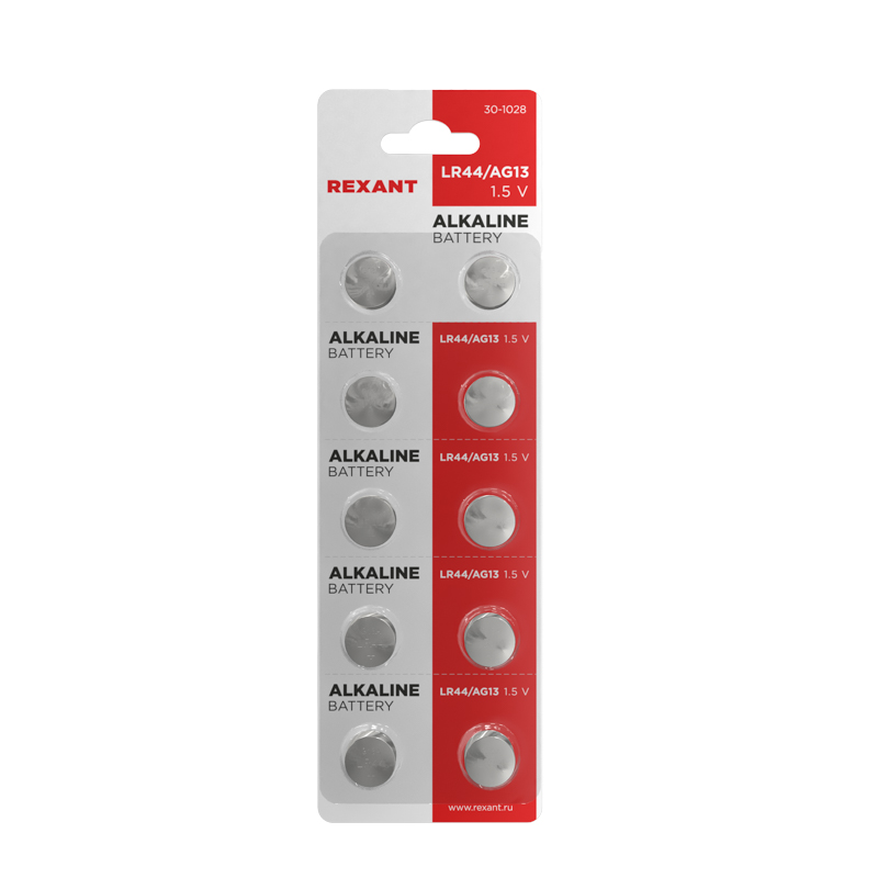 Типоразмер: LR44, AG13, LR1154, G13, A76, GP76A, 357, SR44W REXANT