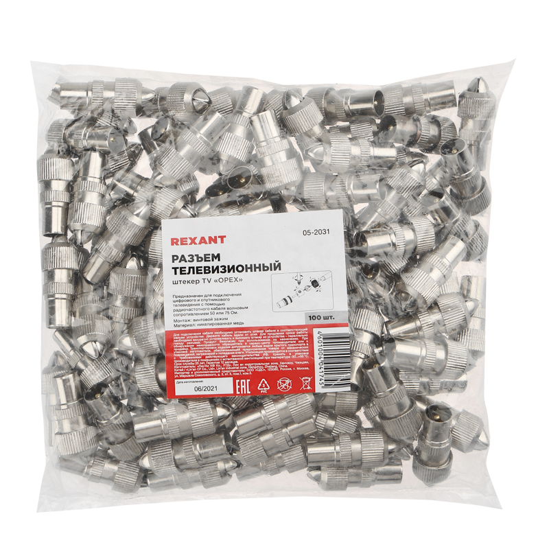 TV-разъем штекер "орех" REXANT предназначен для подключения эфирного, спутникового и кабельного телевидения с помощью радиочастотного кабеля. Разъем монтируется на телевизионный кабель и передает идущий сигнал на ТВ устройства. Установка провода в разъеме производится с помощью винтового зажима, что значительно экономит время на монтаж. Устройство оснащено специальными зажимными лепестками, которые прочно удерживают разъем на кабеле. Корпус и контакты изготовлены из никелированного медного сплава, а центральный пин покрыт напылением технического золота. Благодаря этому контакт становится надежным и долговечным.