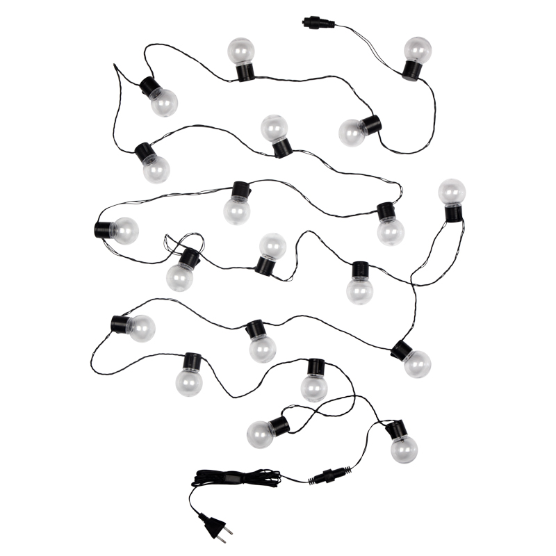 Светодиодная гирлянда в стиле лофт длиной 5 метров излучает теплое белое свечение и отлично подходит для декора интерьеров жилых, общественных помещений: квартир, домов, кафе, студий, ресторанов, игровых площадок. Электрический провод защищен внешней изоляцией из ПВХ черного цвета. 20 светодиодов равномерно размещены по всей длине шнура. Для подключения к сети 230 В предусмотрен трехметровый кабель. Яркое, стильное, современное украшение поможет реализовать самые смелые идеи в области светового декора и подчеркнет уникальный стиль обстановки. Гирлянду можно соединять между собой.