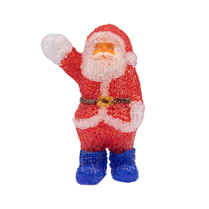 Акриловая светодиодная фигура «Санта Клаус приветствует» высотой 30 см станет прекрасным украшением интерьера, уличной площадки и поможет разнообразить привычное окружение. Светящаяся фигура выполнена из прочного акрила с фактурной поверхностью. 40 ярких диодов излучают белый свет нейтрального оттенка, красиво обрамляя контур и создавая эффект объема. Понижающий трансформатор, идущий в комплекте, адаптирует изделие к стандартной электрической сети с напряжением 230 Вольт. Защита IP65 предполагает использование светодиодной фигуры как в помещениях, так и на улице.