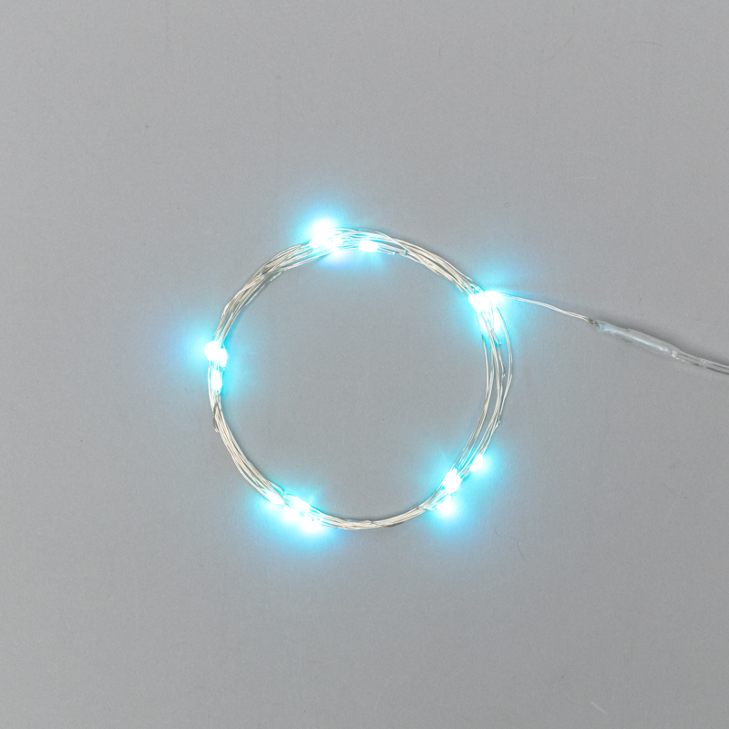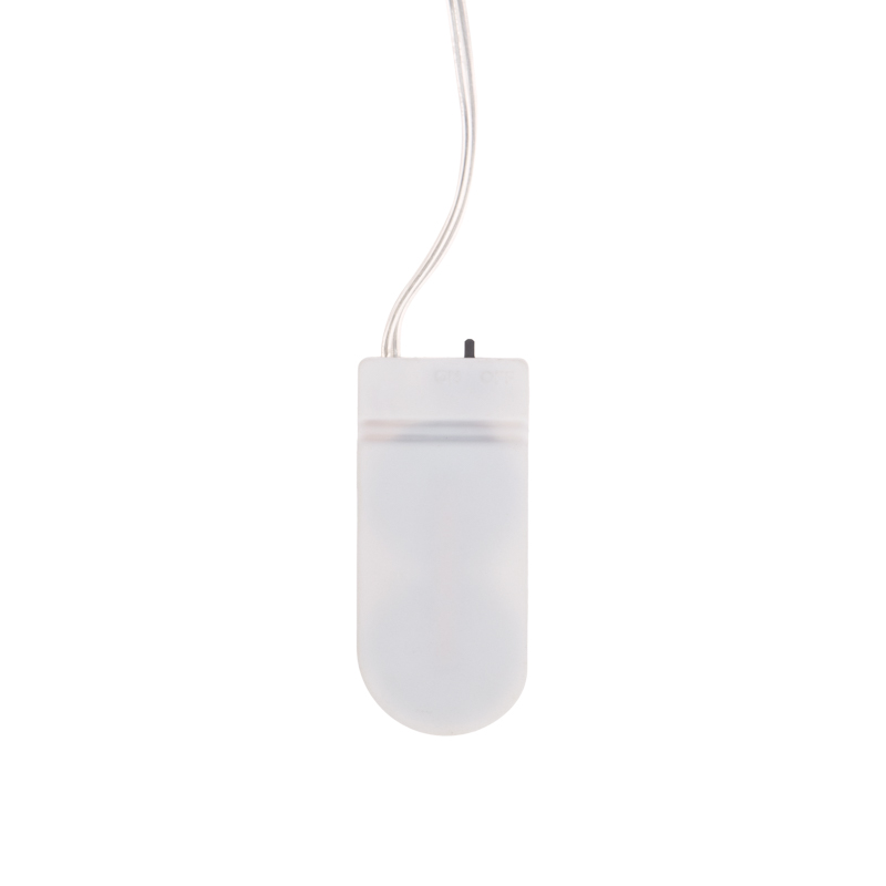 Гирлянда «Роса» длиной 2 метра питается от двух батареек типа CR2032, которые идут в комплекте поставки. Независимость от электросети дает большие возможности в создании уникального декора: изделие подходит для украшения различных интерьерных предметов, композиций и даже букетов из цветов. 20 диодов, расположенных на серебристом проводе светятся голубым. Гирлянда, подобно проволоке, имеет свойство фиксироваться в выбранном положении. Блок с батарейками находится на конце электрокабеля длиной 30 см. Изделие на батарейках, оно безопасно в использовании и подойдет для декора даже в детской комнате.