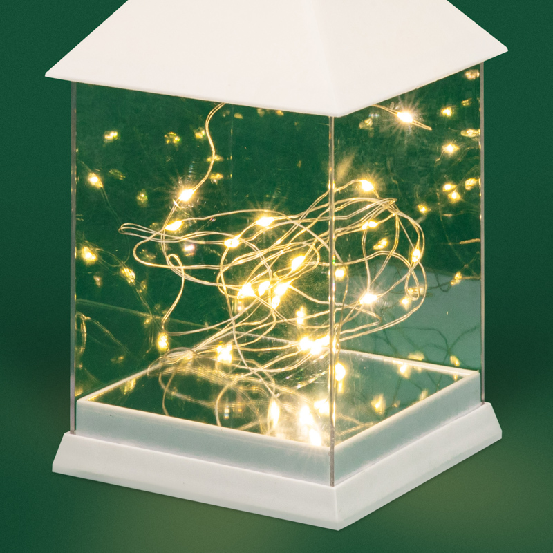 Декоративный фонарь с гирляндой Роса внутри станет оригинальным украшением интерьера, символизирующим тепло и уют. Корпус выполнен в белом цвете, который гармонично дополнит обстановку любого стиля.