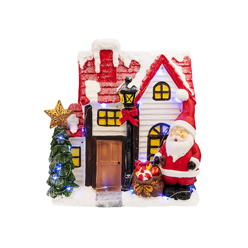 Керамическая фигурка «Рождественский дом» 37.5×20×42.5 см — оригинальная новогодняя композиция со множеством проработанных декоративных деталей, которые хочется рассматривать, погружаясь в атмосферу зимней сказки. 20 ярких диодов светятся разноцветными огнями в хаотичном режиме, эффектно обрамляя керамическую фигурку. За питание отвечает батарейный блок, в который устанавливаются 3 мизинчиковые батарейки (тип ААА). Удобная кнопка ON/OFF позволяет включать и выключать подсветку. Фигурка «Рождественский дом» — прекрасный подарок к новогоднему празднику.