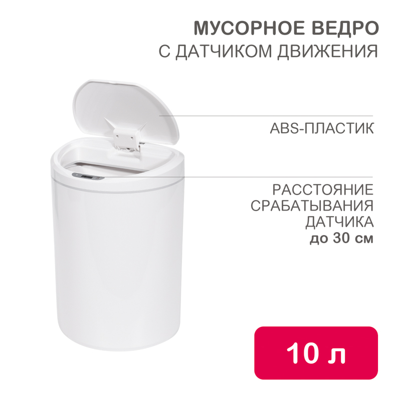 Сенсорное мусорное ведро, выполненное в круглой форме, подходит для сбора бытового, офисного и медицинского мусора. Оснащено технологией сенсорного управления, которая позволяет открывать и закрывать крышку автоматически, что делает использование более гигиеничным и удобным. Дистанция срабатывания до 30 см.