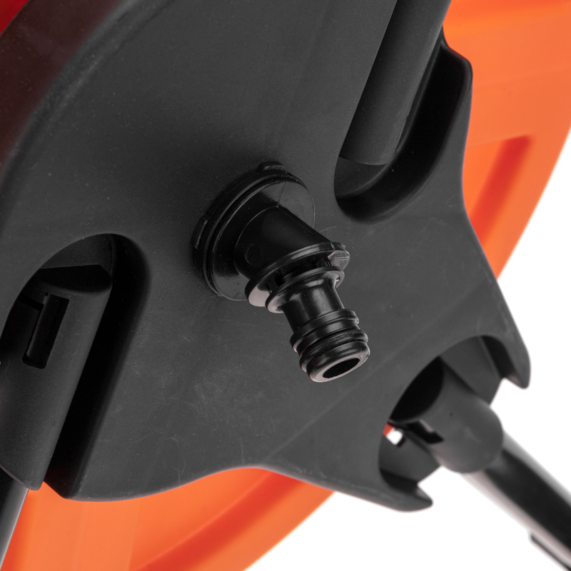На нижней части тележки располагаются колесики, которые обеспечивают комфортное передвижение даже по неровной поверхности и позволяют с комфортом перемещать тележку со шлангом в любое необходимое место.