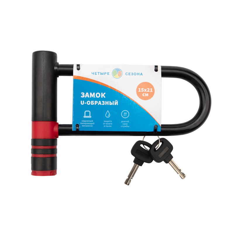 Замок-скоба ЧЕТЫРЕ СЕЗОНА – надежное и проверенное средство от кражи велосипедов, мопедов, колясок, рекламных щитов, вывесок и другого имущества.