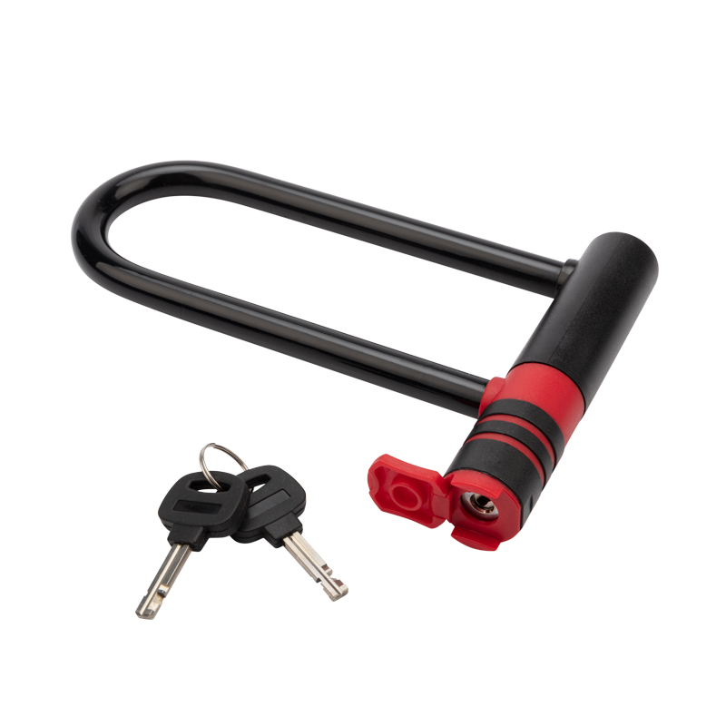 Замок изготовлен из высококачественной стали, устойчив к резке, ударам и механическим повреждениям. U-образная форма и компактный размер делают замок удобным в использовании и транспортировке.