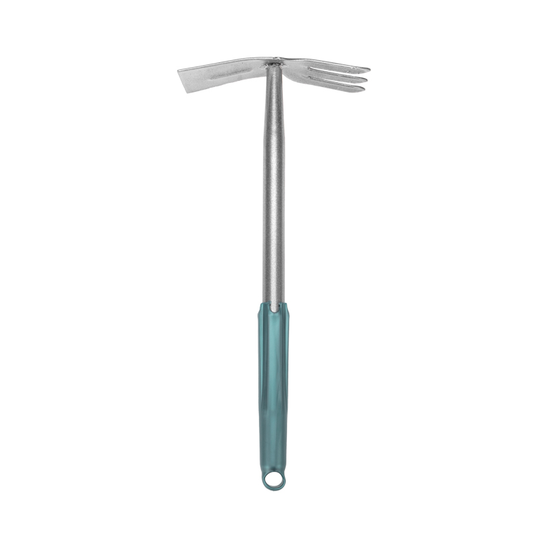 Также в рукоятке предусмотрено отверстие, позволяющее размещать мотыжку на вертикальных поверхностях, что обеспечивает удобство хранения и позволяет экономить место на рабочем пространстве.