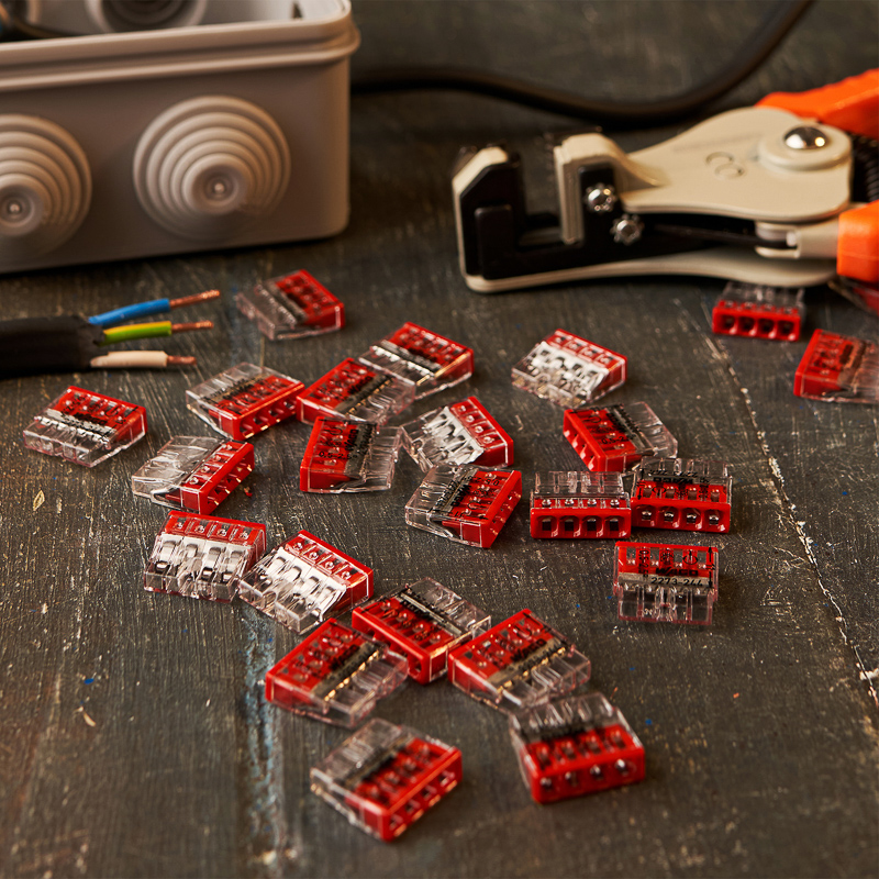 Электромонтажные экспресс-клемы WAGO 2273-244 позволят безопасно и быстро соединить 4 провода между собой (алюминиевые и медные как одножильные, так и многожильные). Достаточно просто вставить жилу кабеля или провода в клемму и самозажимной контакт надежно зафиксирует соединение. Диаметр соединяемых проводов должен составлять в сечении от 0,5 до 2,5 мм2. Номинальный ток 24А; Номинальное напряжение 450В. Удобные тестовые гнезда, прозрачный корпус для визуального контроля и смотровое окно для проверки защиты от касаний делают работу более безопасной. Наличие пасты обеспечивает надёжную изоляцию контакта