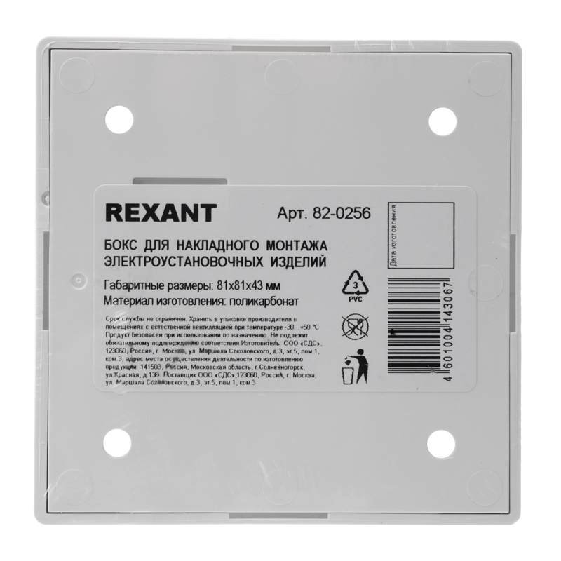 Бокс для накладного монтажа электроустановочных изделий BN-01 REXANT – это надежное и удобное решение для установки различных электрических приборов. Он изготовлен из высококачественного пластика, который обеспечивает долговечность и надежность работы. Обладает высокой прочностью и устойчивостью к механическим повреждениям.